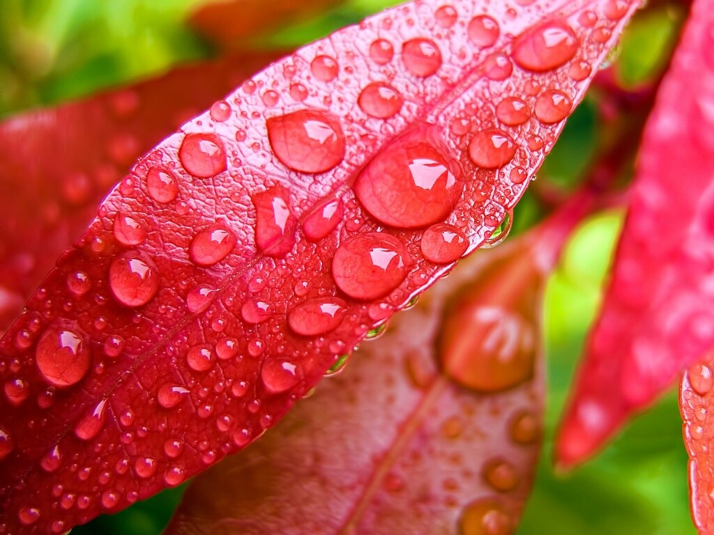 «Капли росы на красных листьях»
