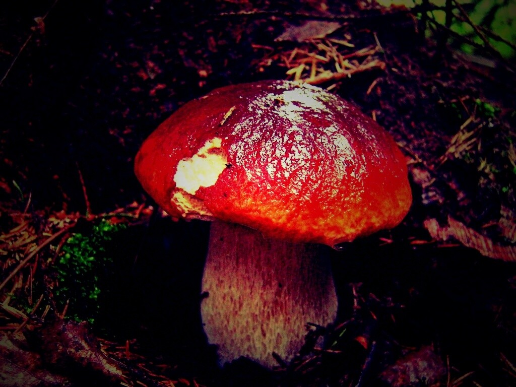 Обои для рабочего стола «Белый гриб» 1024х768 с фильтром lomo (оригинал 1920х1200)