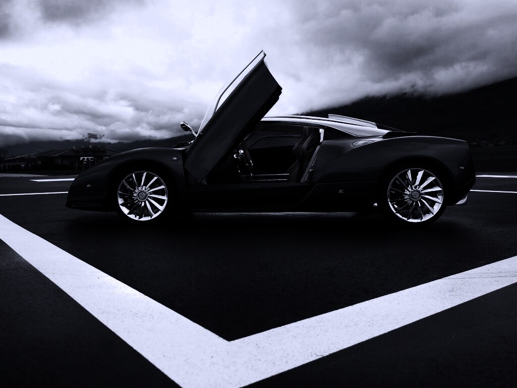 Обои для рабочего стола «Spyker C12 на аэродроме» 1024х768 с фильтром gotham (оригинал 1920х1200)