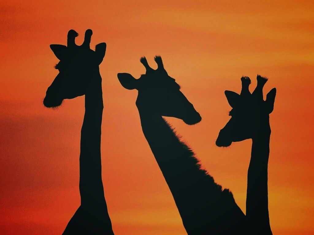 «Три силуэта жирафов на фоне неба»