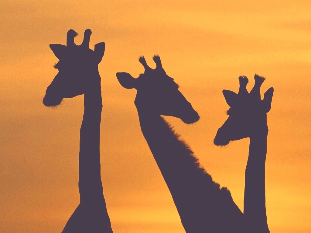 «Три силуэта жирафов на фоне неба»