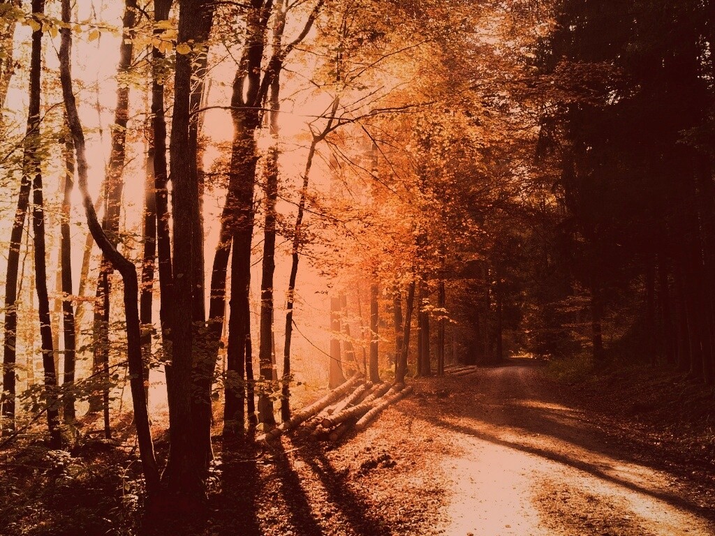 «Дорога вдоль просеки в осеннем лесу»