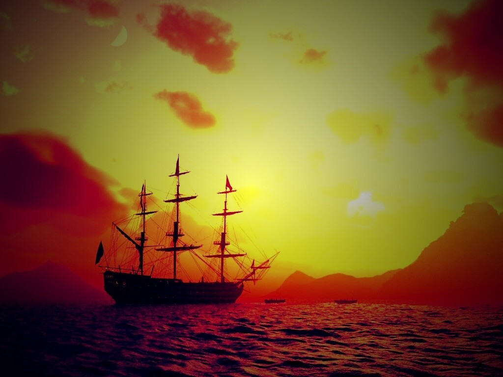 «Трехпалубный парусный корабль на закате»