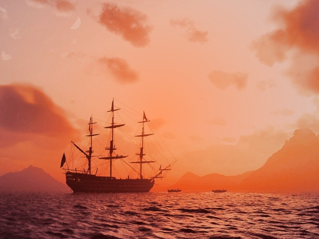 «Трехпалубный парусный корабль на закате»