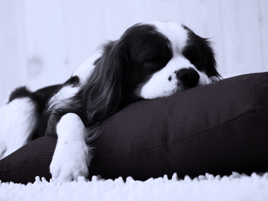 «Спящий щенок на красной подушке»