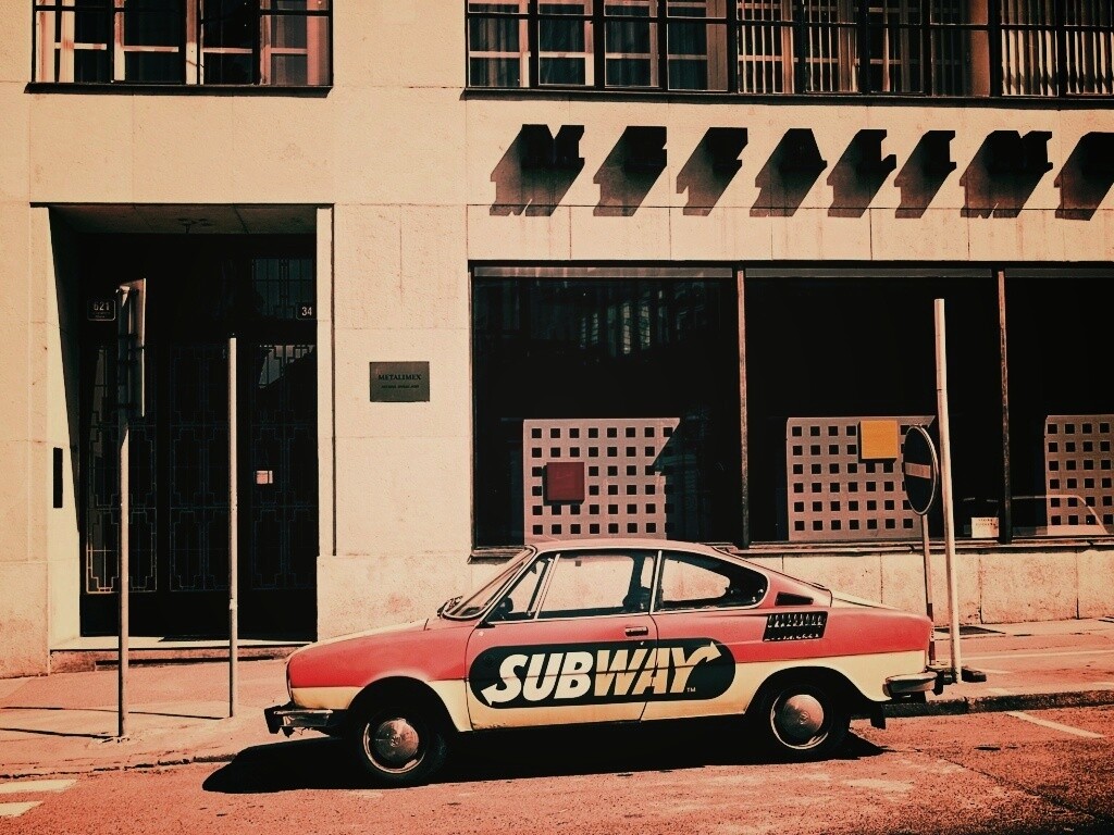 «Реклама Subway на машине в Праге»