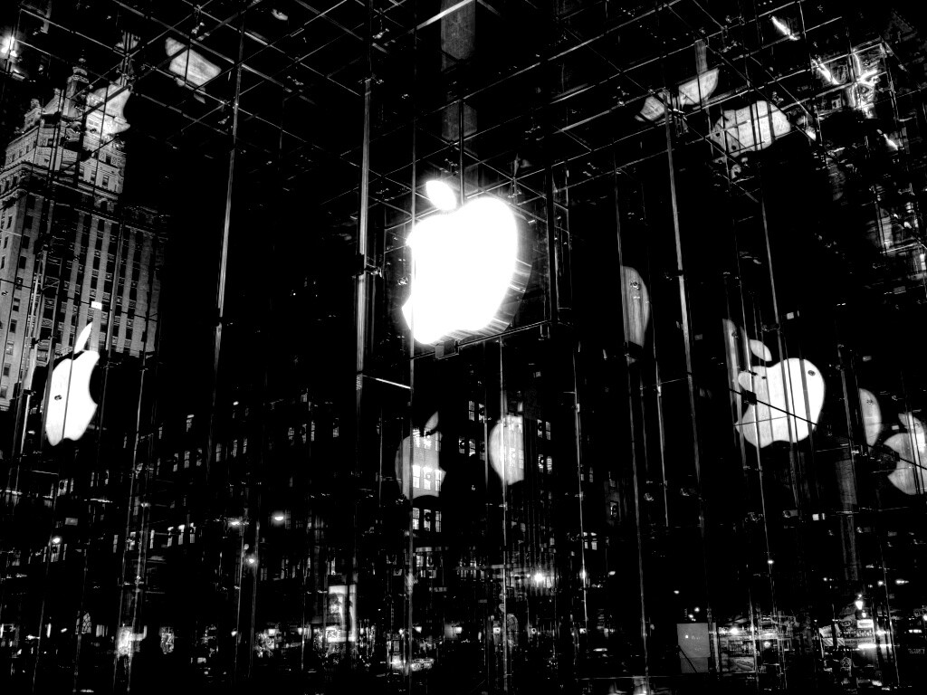 «Отражение логотипа Apple в стеклянном здании»