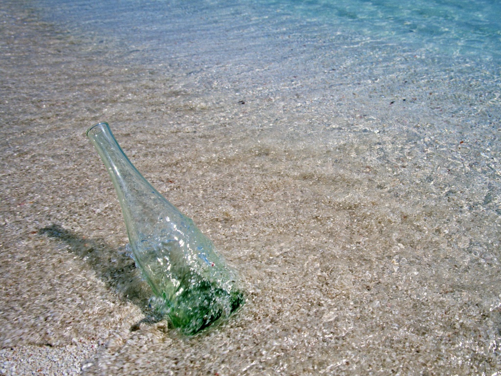 «Бутылка в песке у воды»