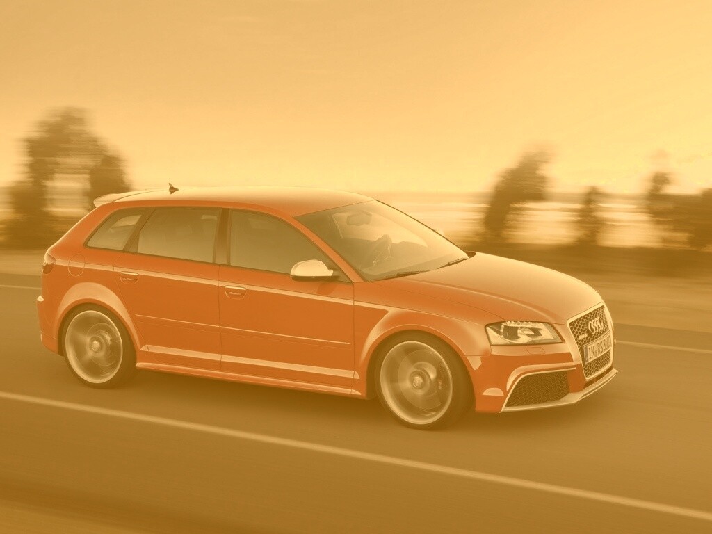 «Красная Audi модели RS3 на дороге»