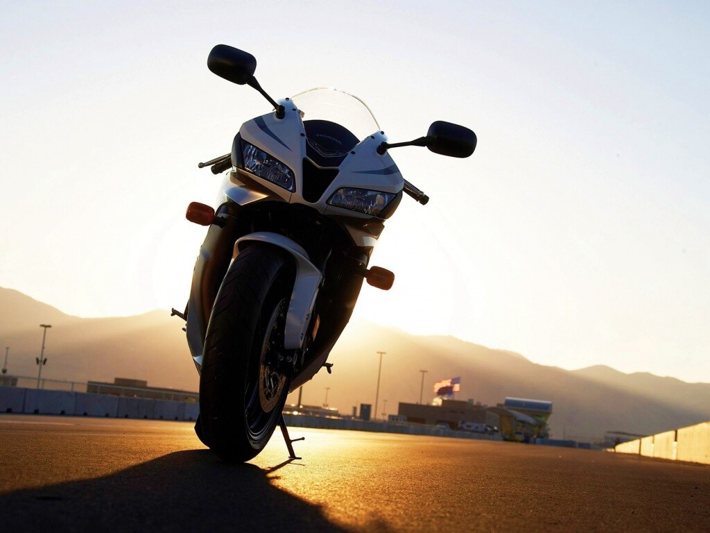 «Мотоцикл на фоне заходящего солнца»