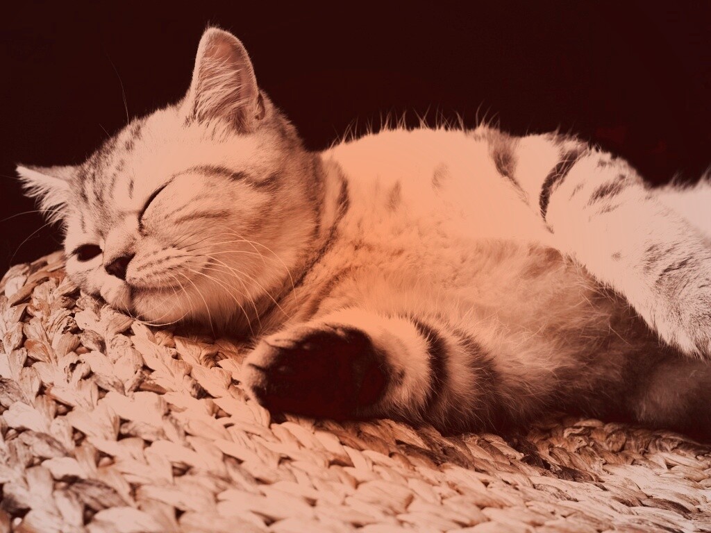 «Пушистый кот спит на корзине»