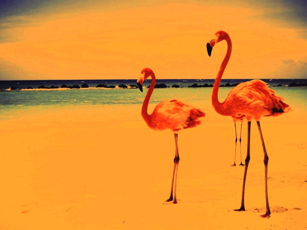 «Розовые фламинго на пляже»