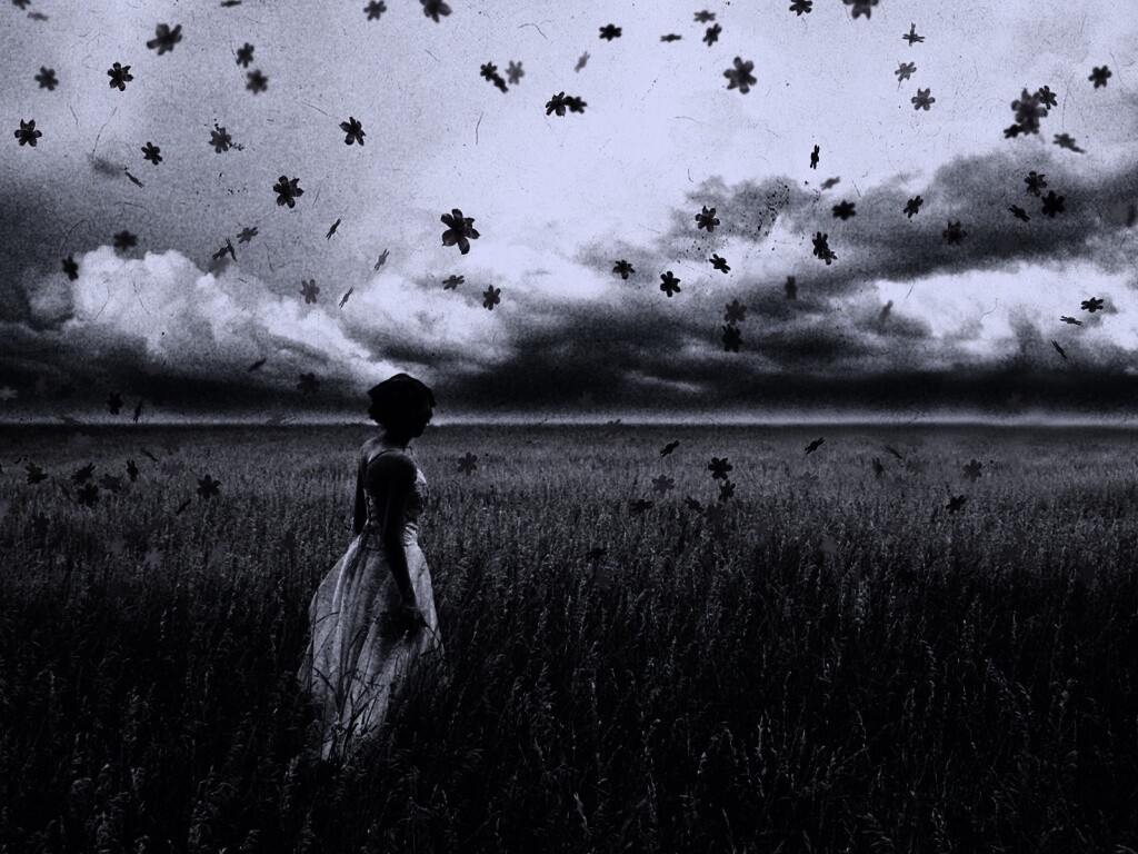«Грустная девушка в поле травы»