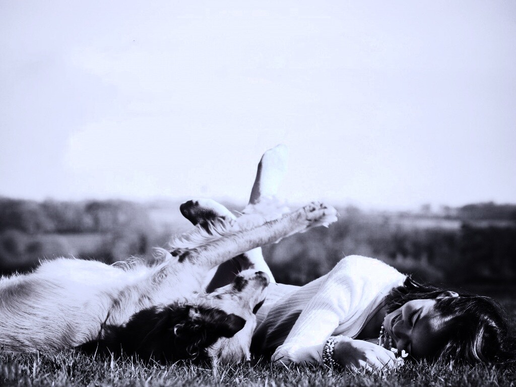 «Девушка и собака валяются на траве»