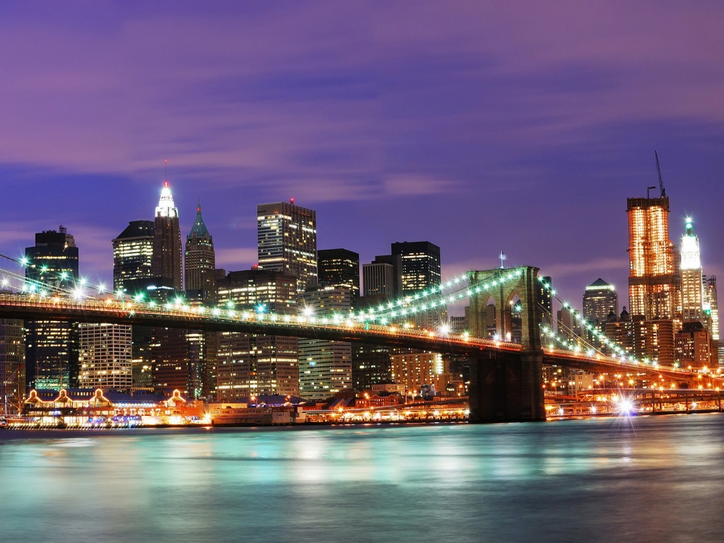 «Бруклинский мост на фоне ночного Нью-Йорка»