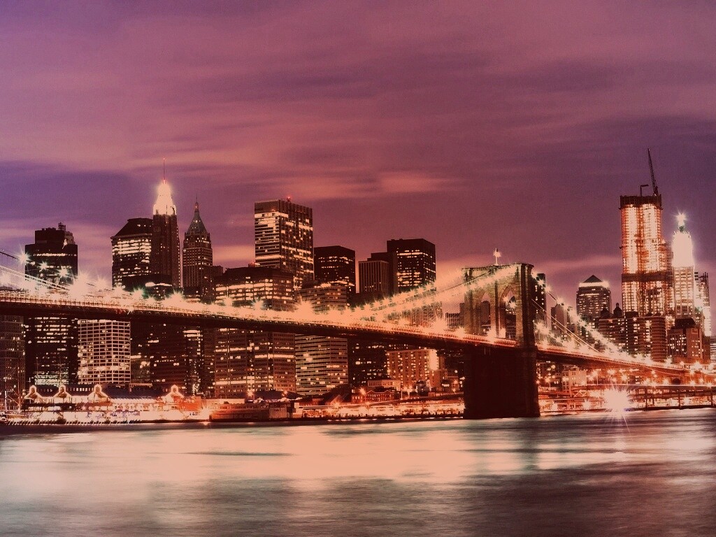 «Бруклинский мост на фоне ночного Нью-Йорка»