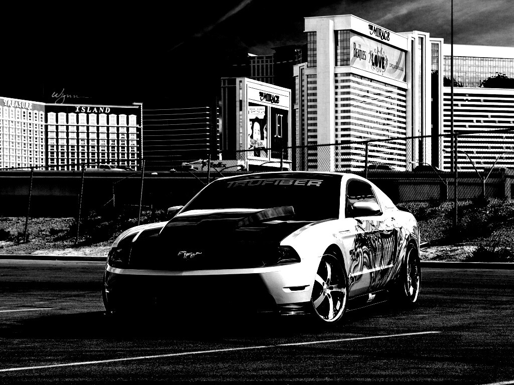 Обои для рабочего стола «Мустанг на парковке» 1024х768 с фильтром inkwell (оригинал 1920х1200)