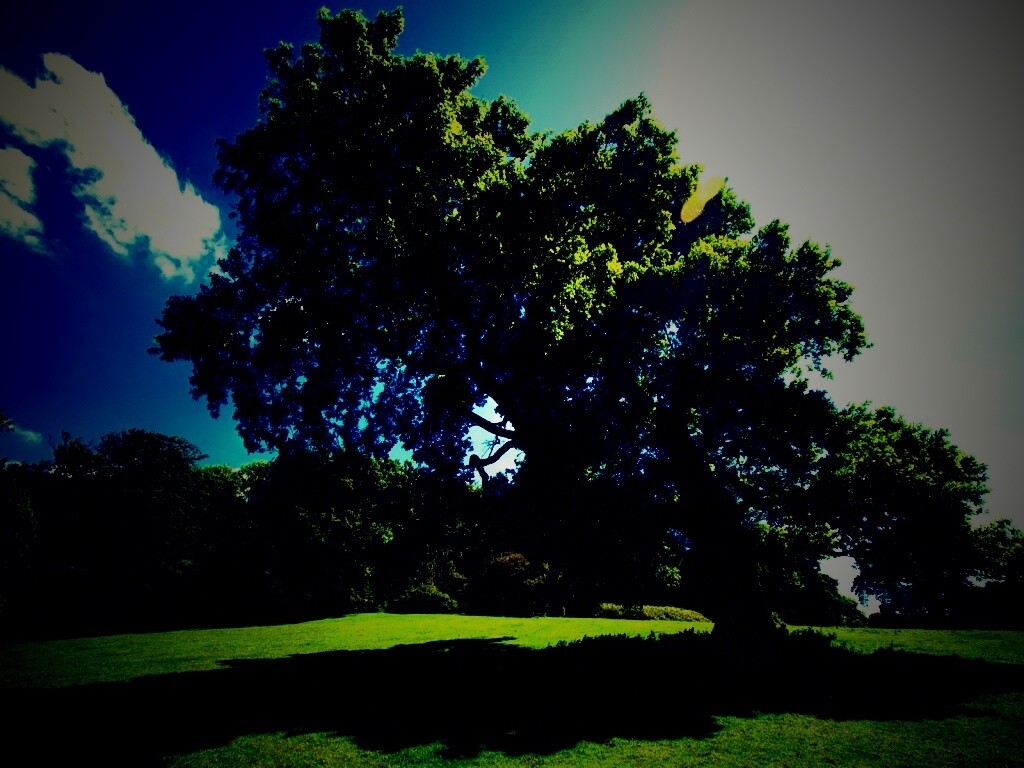 «Большое зеленое дерево на лужайке»
