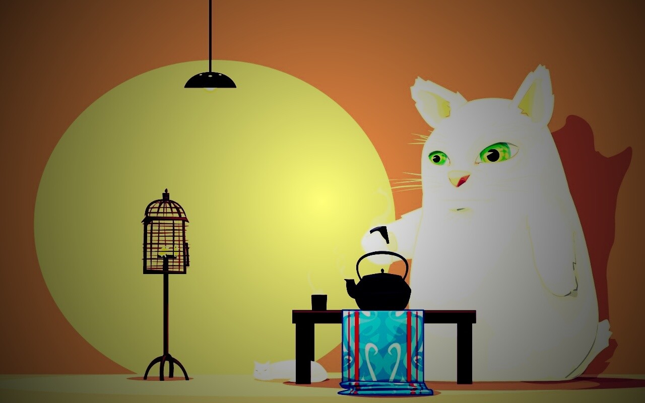 «Кот пьет чай»