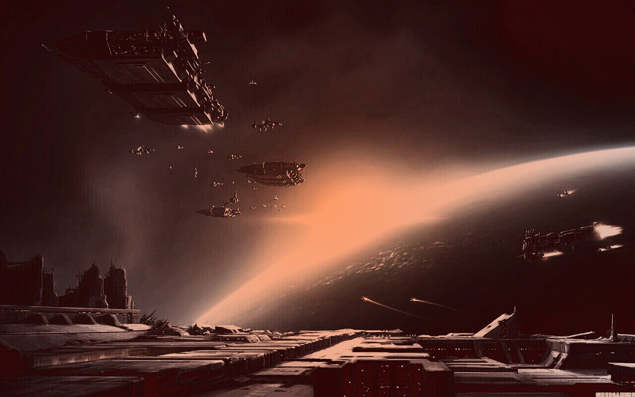 Обои для рабочего стола «Космический флот» 1280х800 с фильтром toaster (оригинал 1680х1050)