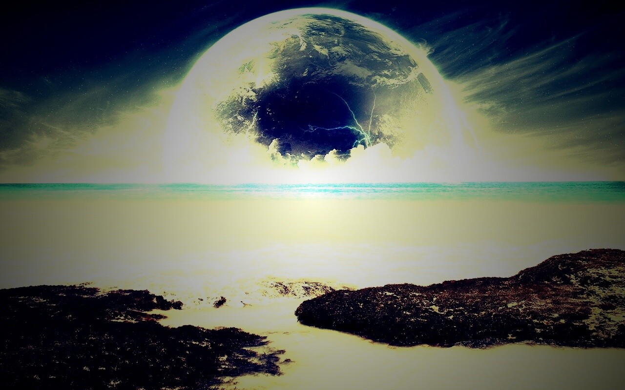 «Огромная луна над океаном»