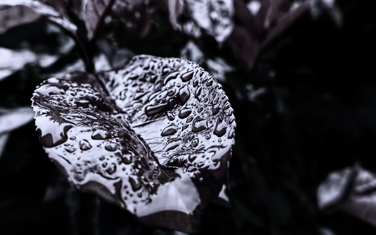 «Красный лист в каплях воды»