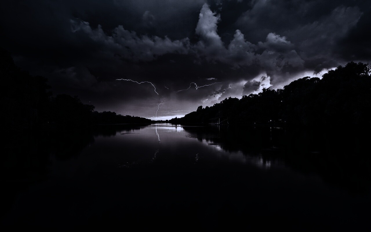 «Молнии на фоне заката, стандартные обои mac»