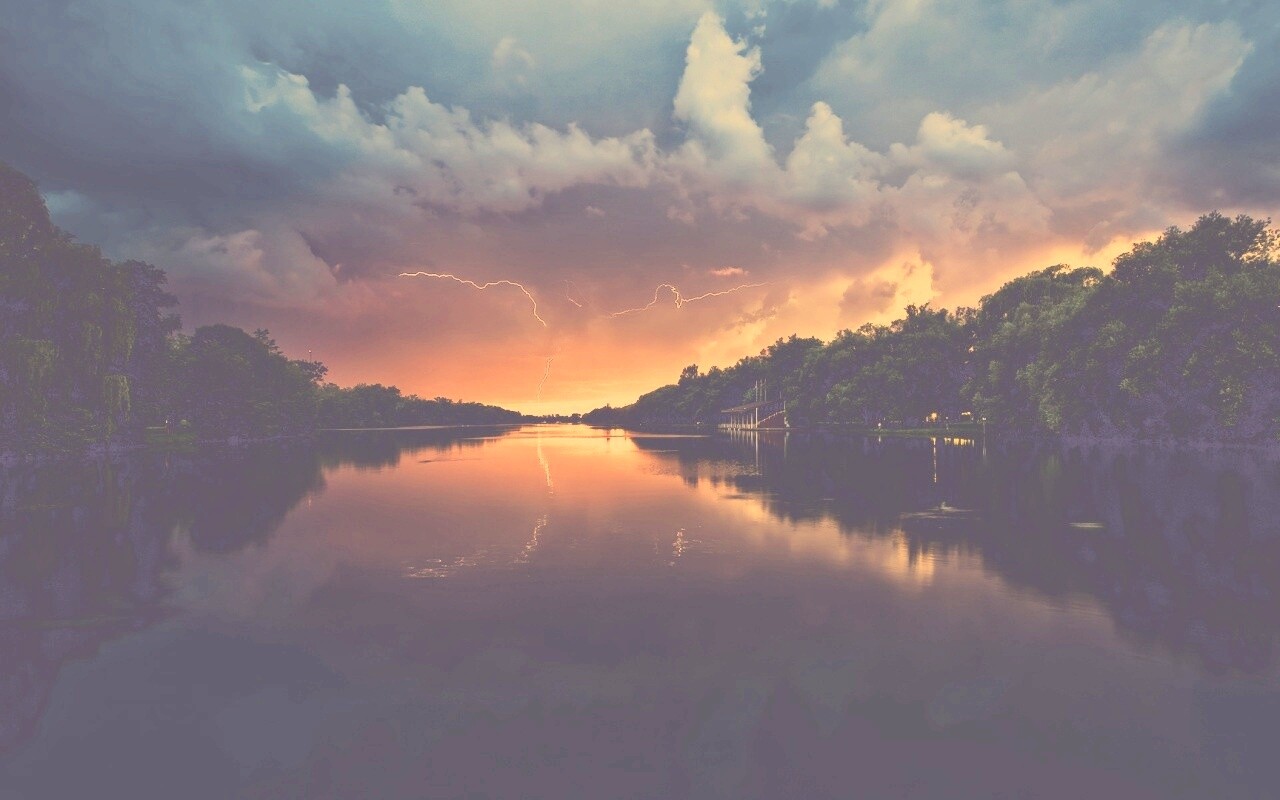 «Молнии на фоне заката, стандартные обои mac»