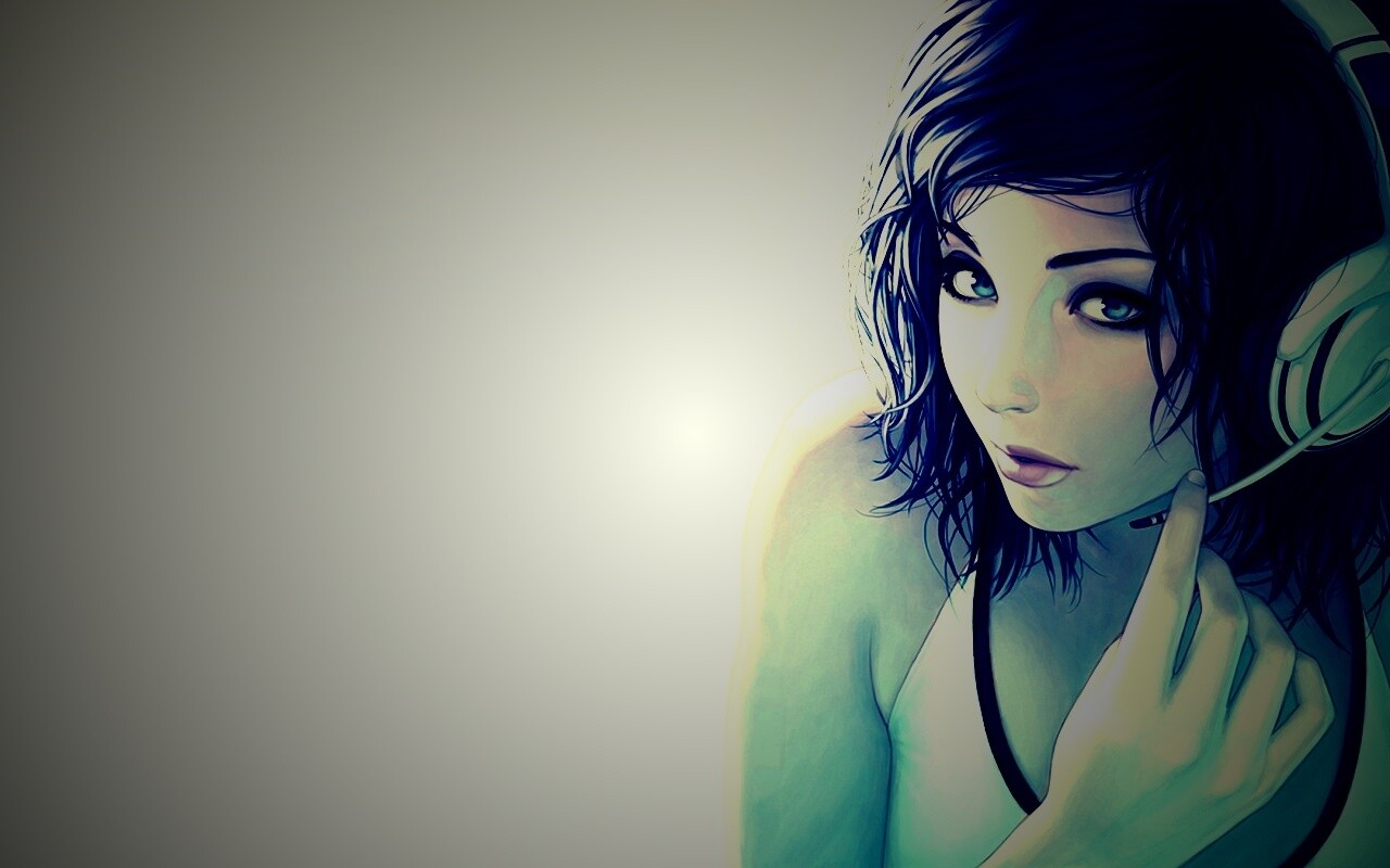 «Сексуальная девушка в наушниках с микрофоном»