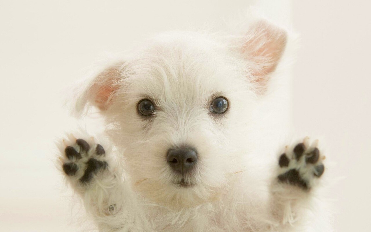«Белый любознательный щенок»