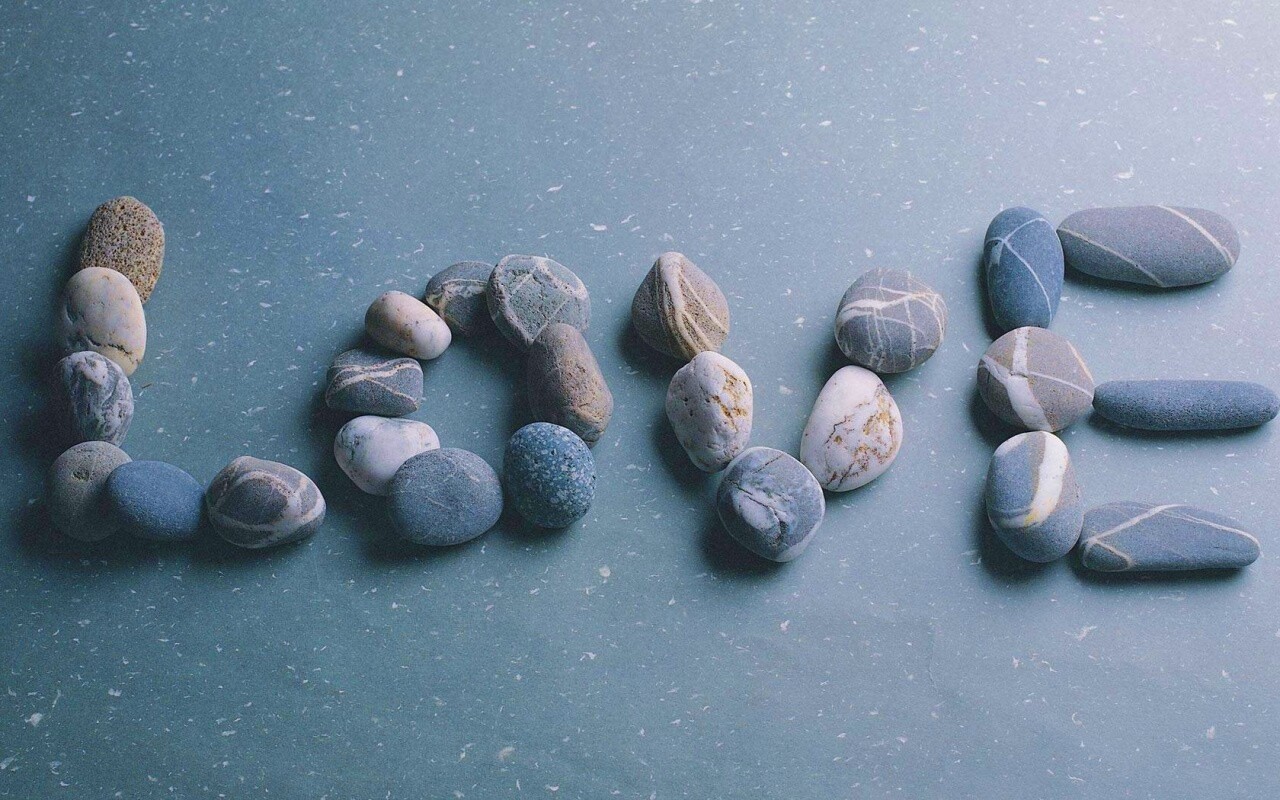 «Слово "любовь" выложенное камнями»
