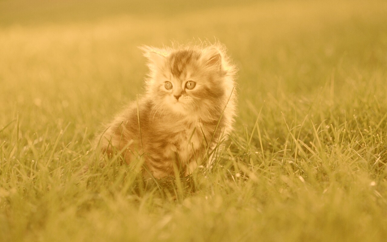 «Пушистый котенок в траве»