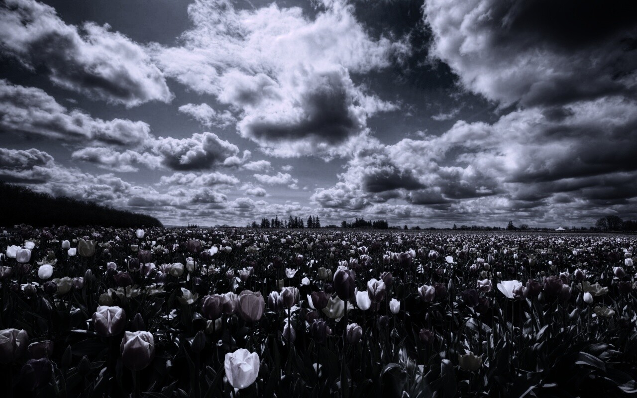 Обои для рабочего стола «Поле тюльпанов» 1280х800 с фильтром gotham (оригинал 2560х1600)