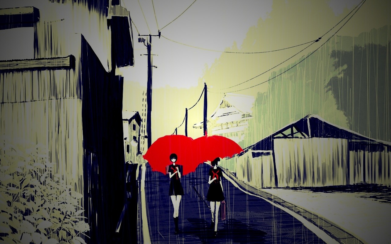 «Девушки с красными зонтами»