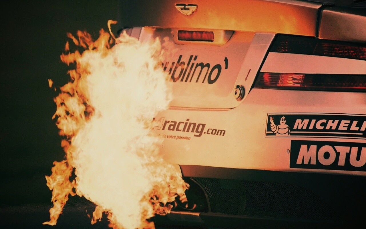 «Огонь из выхлопной трубы гоночного Aston Martin»