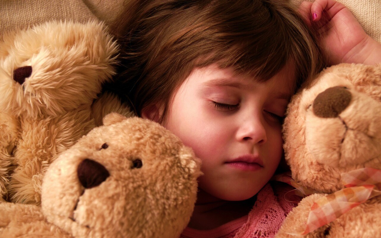 «Девочка спит с мишками в обнимку»