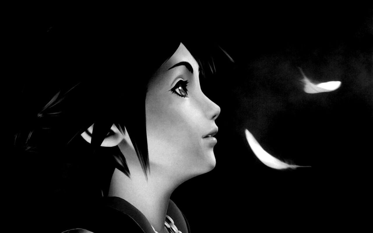 «Анимешный парень и белые перья»