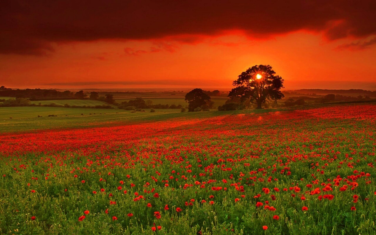 «Закат на поле красных цветов»