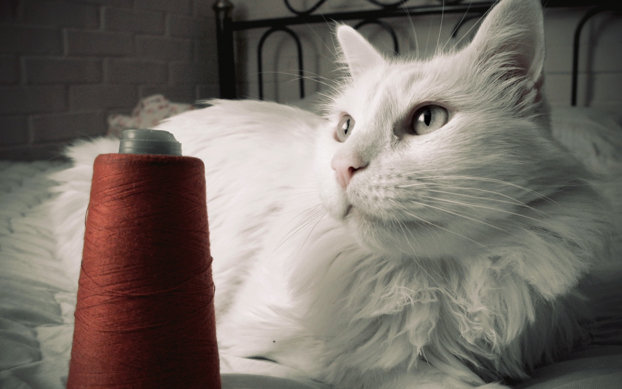 «Белый кот с катушкой ниток»