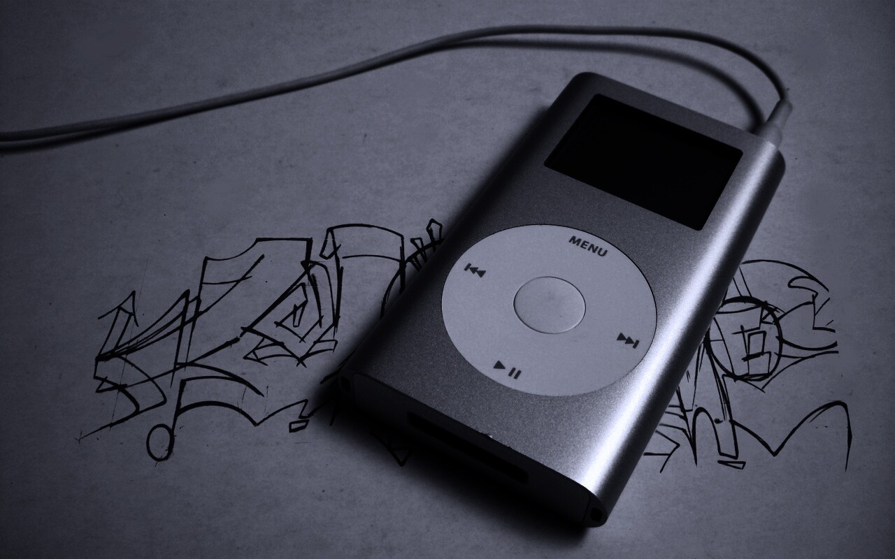 «iPod на лиске с граффити»
