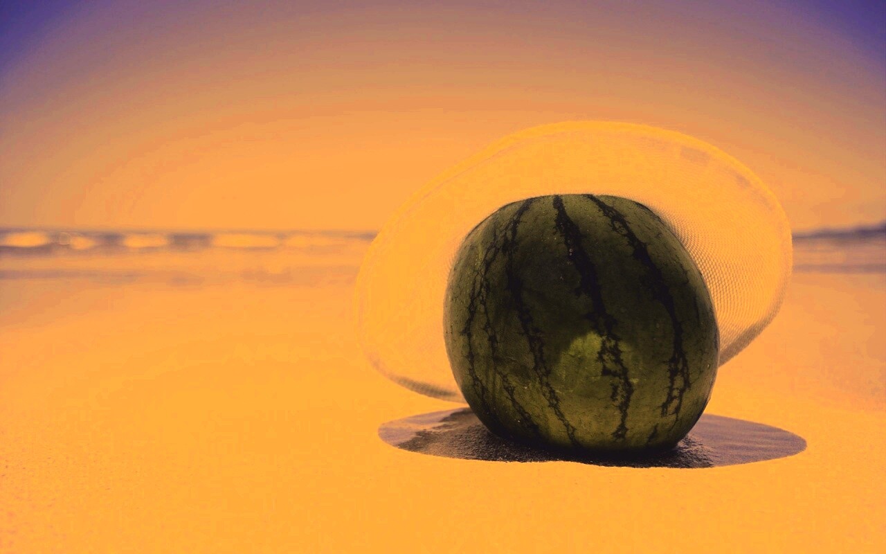 «Арбуз в летней шляпке на пляже»