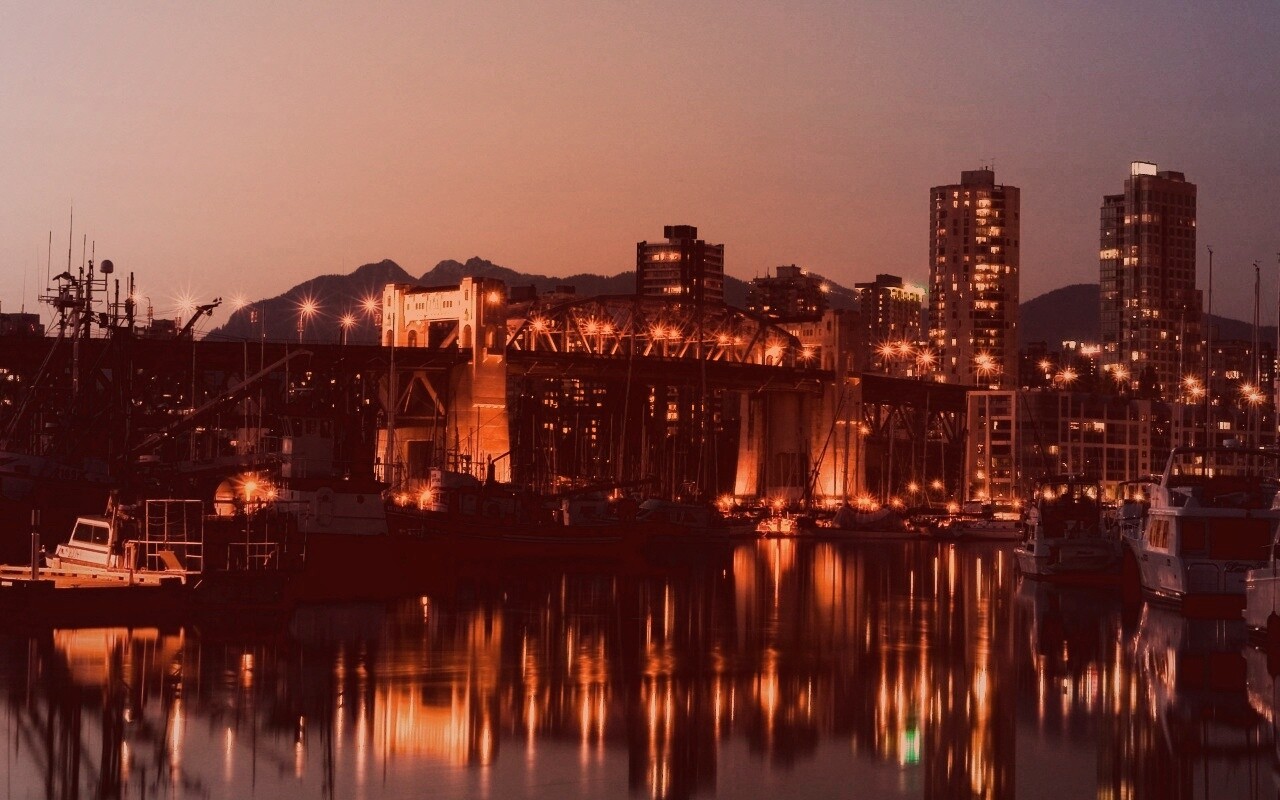 «Мост и катера на закате»
