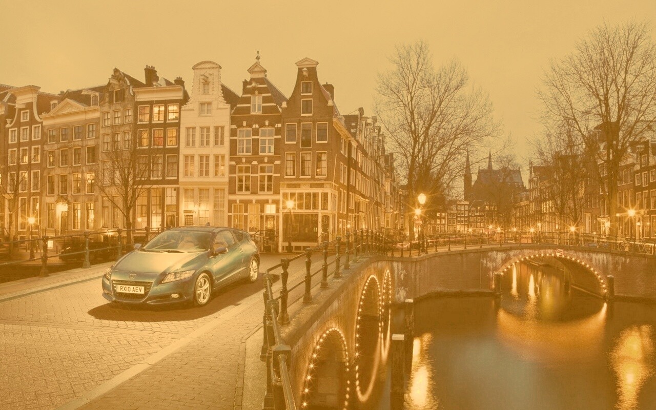 «Автомобиль на мосту в свете фонаря»