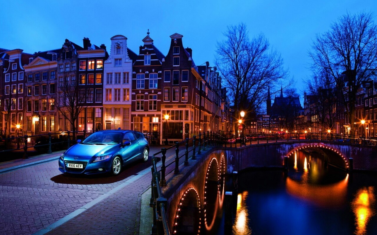 «Автомобиль на мосту в свете фонаря»