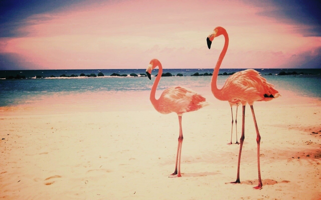 «Розовые фламинго на пляже»