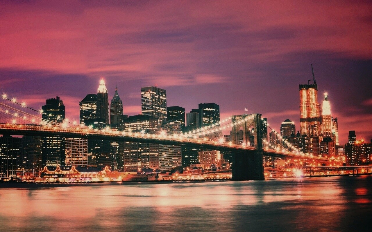 «Бруклинский мост на фоне ночного Нью-Йорка»