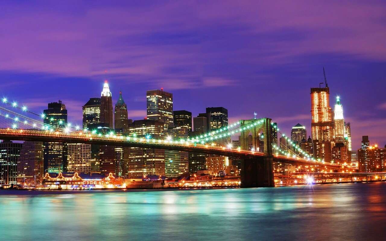 «Бруклинский мост на фоне ночного Нью-Йорка»