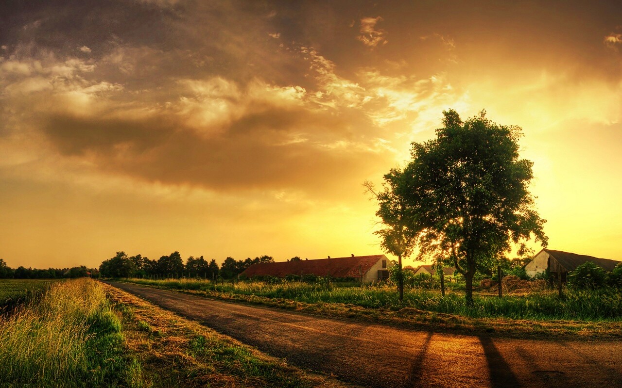 «Закат на фоне дерева в HDR»