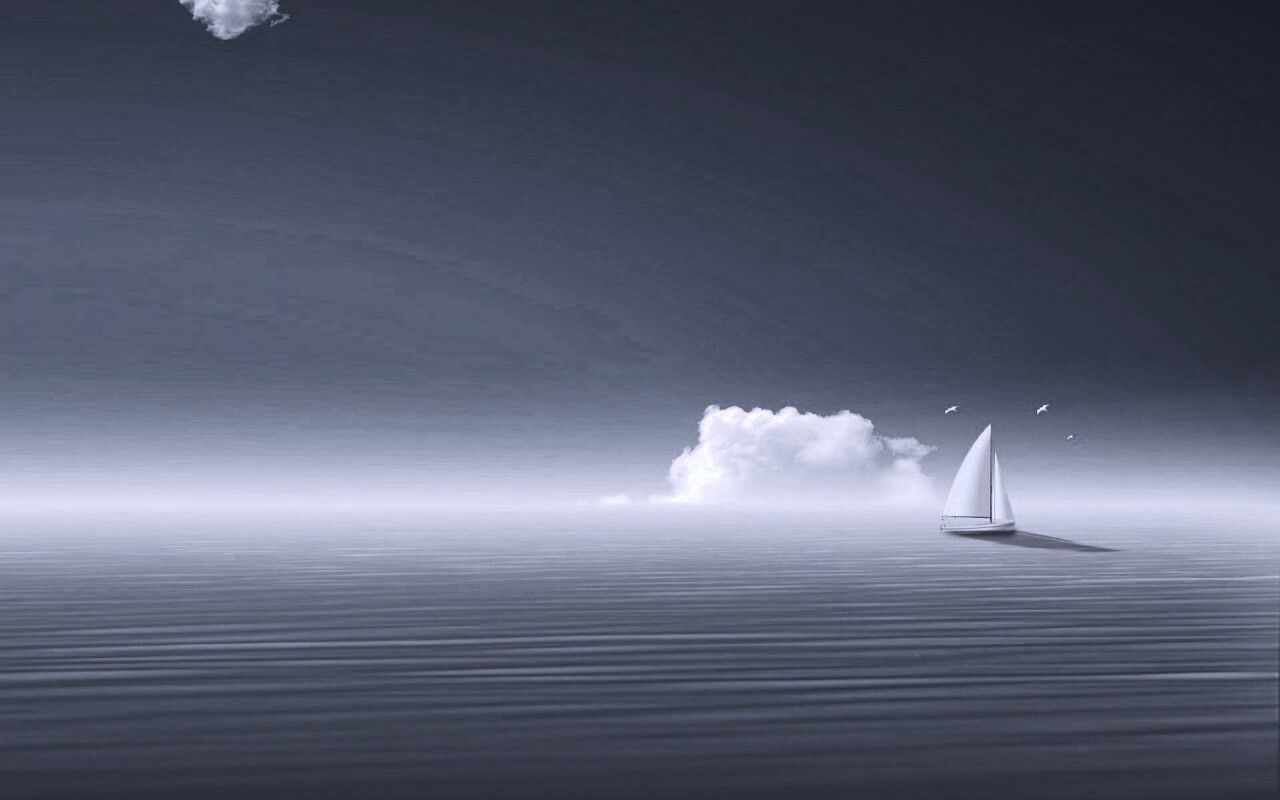 «Голубые обои под хорошее настроение с парусником»