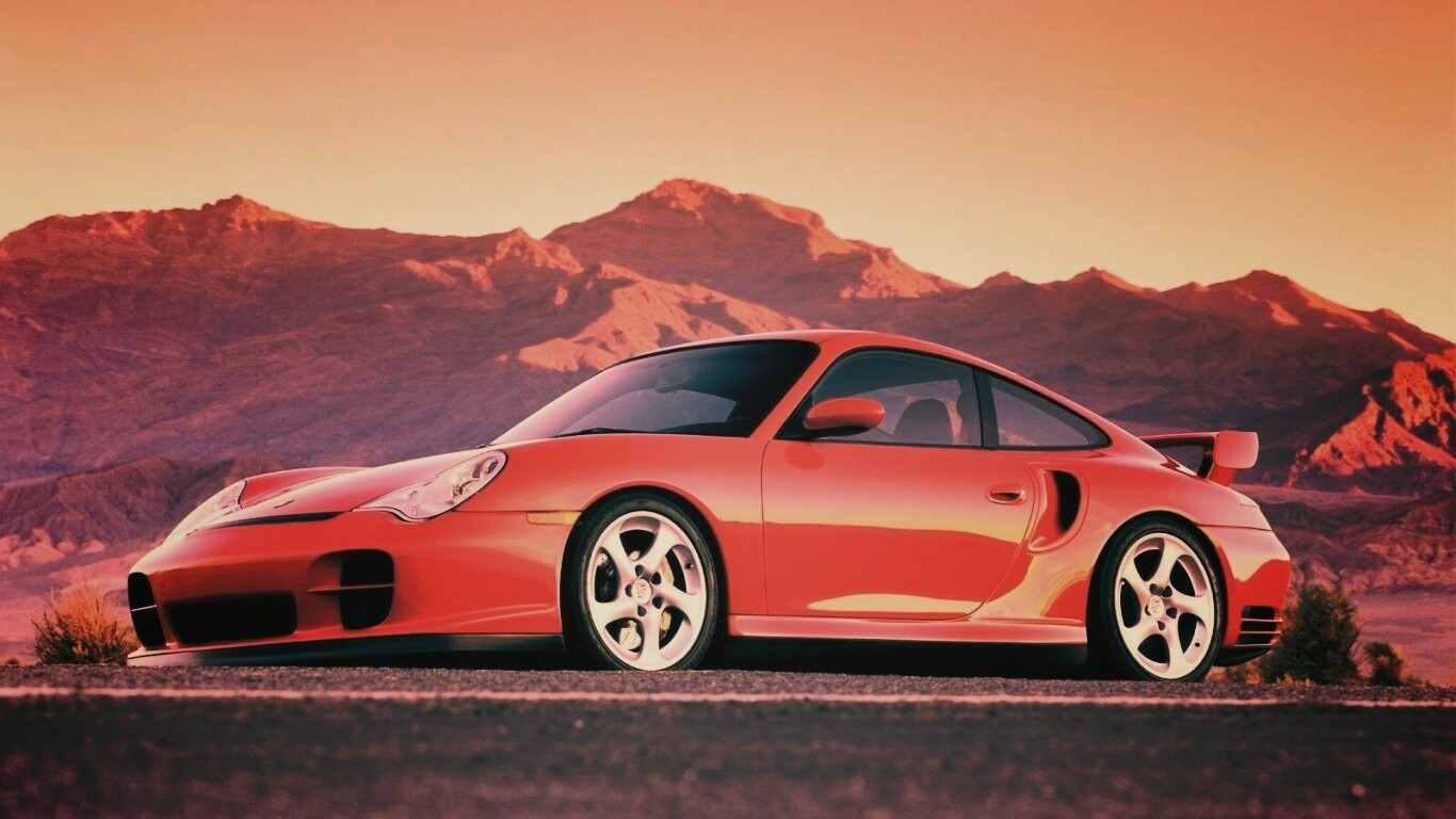 «Красный Порше на фоне гор»